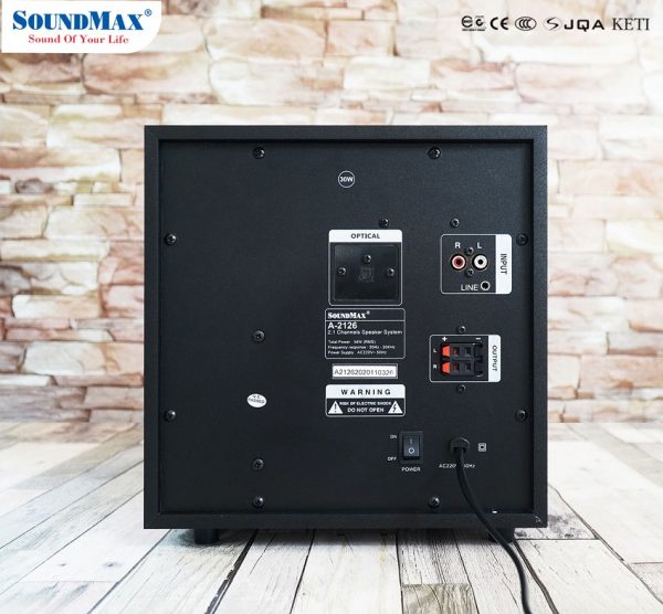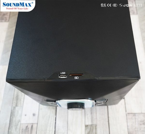 Ngoài ra Loa SoundMax A-2126 còn có chức năng điểu khiển từ xa với remote kèm theo. Hỗ trợ Bluetooth 5.0, USB, SD Card, ngõ vào AUX (RCA jack / 3.5mm stereo) và Optical.